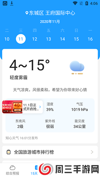 1、可以浏览当前城市未来十五天的天气情况,让用户可以为自己的出行做好规划;