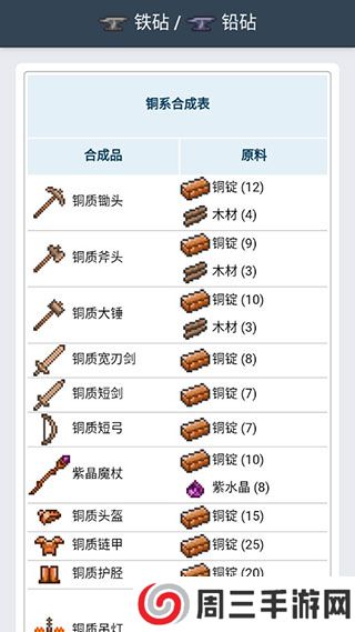 大部分玩家可能会使用的Terraria Wiki也有非常详细的各种合成配方,不仅有解析,还有图片说明。