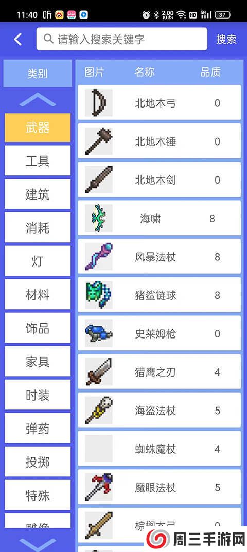 4、合成表更是将npc以及武器参数都有专门的栏目详细解答。