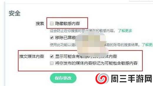 4、在推文媒体内容(Tweet media)项,勾选显示可能含有敏感内容的媒体内容(Display media that may contain sensitive content)