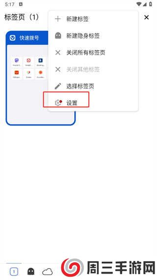2.点击搜索框右边功能键可以进入标签页面、设置、帮助和反馈等页面;