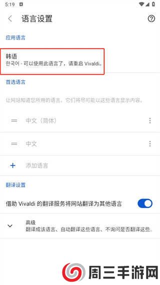 6.最后点击过后来到选择语言的页面中直接点击【中文】即可;