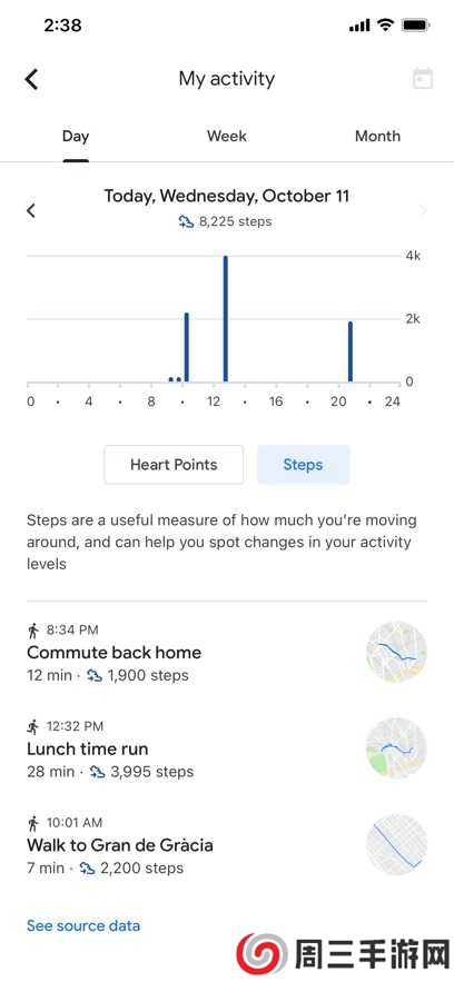 如果您全天都在进行步行、跑步或骑自行车活动,您的Android手机或Google智能手表的WearOS将自动检测您的运动历史并将其添加到日志中,以确保您收到每次运动的心肺增强评分和活动时间。