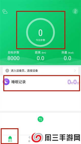 4.在首页可以查看今天步数以及进行睡眠记录。