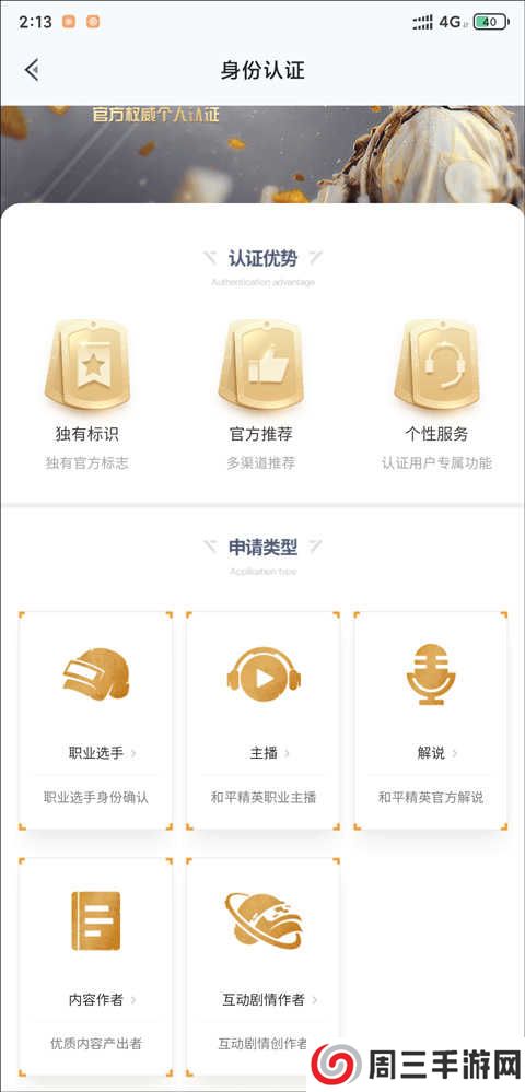 4、点击个人认证,拥有职业选手、主播、解说、内容作者、互动剧情作者等申请类型可以选择