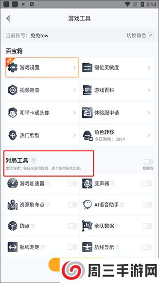 4、打开营地工具页面,即可找到游戏工具(即:对局工具,注意该工具需要当天登录营地,才能激活游戏内的工具功能)