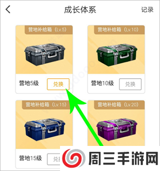 2、还有就是大家可以进入和平营地个人中心界面,点击头像旁边的“等级”,就可以进入成长体系界面了,切换到营地特权,然后将营地特权页面向上滑,可以看到这里有营地补给箱,大家达到一定的等级就可以兑换这些补给箱了。