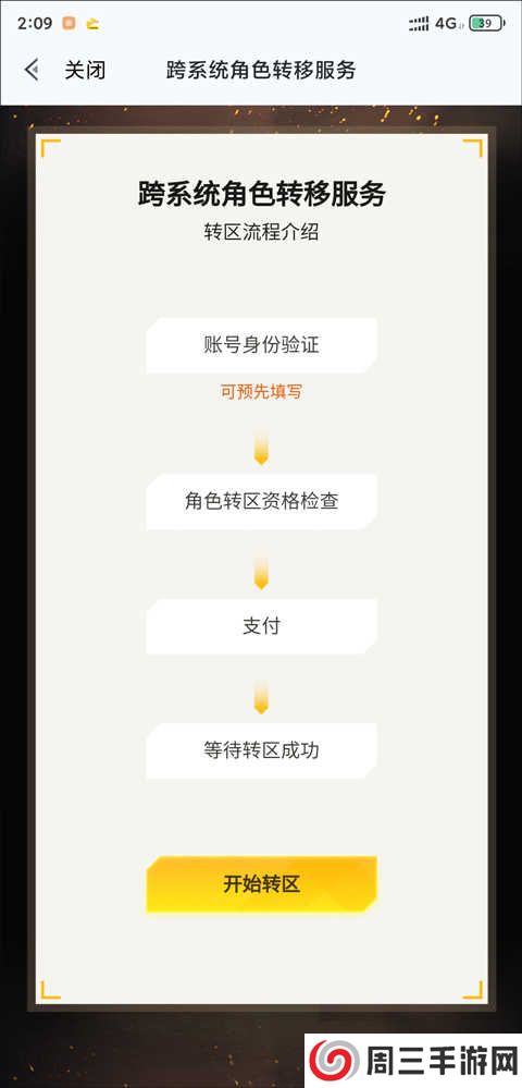 5、进入转区流程,进行身份验证、资格检查、支付费用,之后等待完成即可