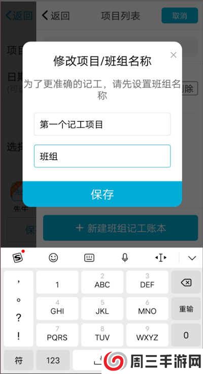 (2)首次进入需先创建班组,填写项目名称和班组名称