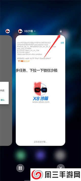 3、后台任务,锁定X8沙箱,即后台多任务界面,下拉一下X8沙箱,出现锁的标志即可