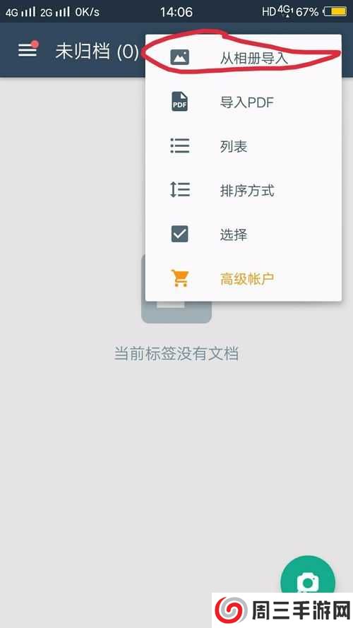 进入软件首页后,我们选择右上角的三个圆点,再从相册中导入,当然也可以选择右下角的相机进行现场拍照。