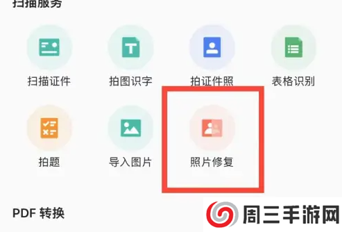 在工具箱界面选择照片修复选项。