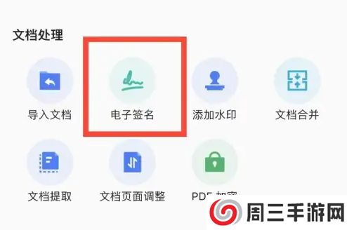 在工具箱界面选择电子签名选项。