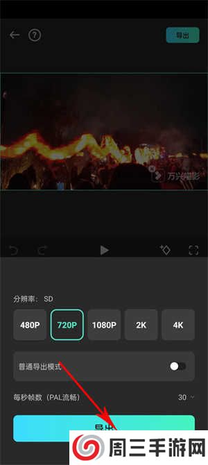 7.当编辑完成后,就可以点击右上角进行设置视频清晰度导出了。