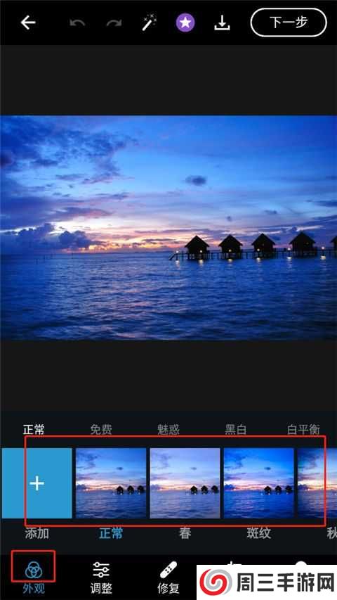 点击滤镜类别,然后滚动查看各个滤镜。点击滤镜即可将其应用到照片中