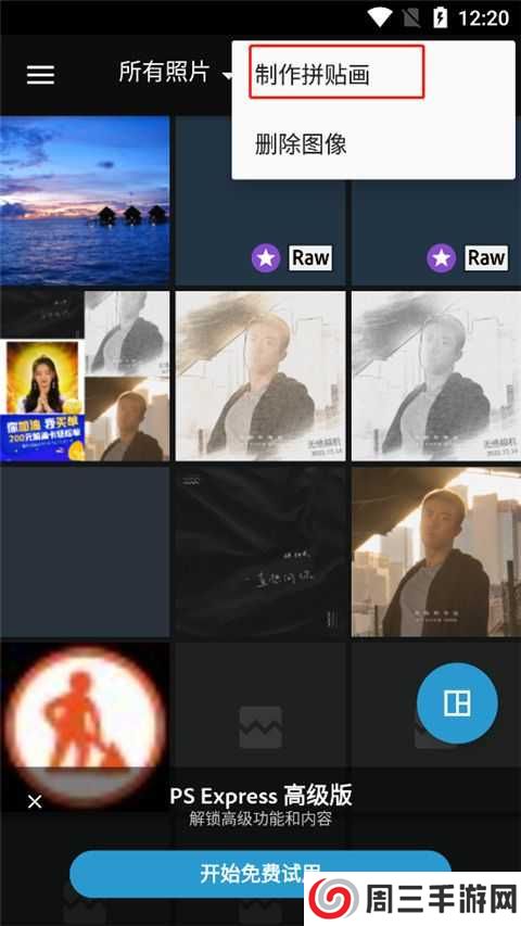 1.进入软件首页,点击右方三个点,点击制作拼接图;