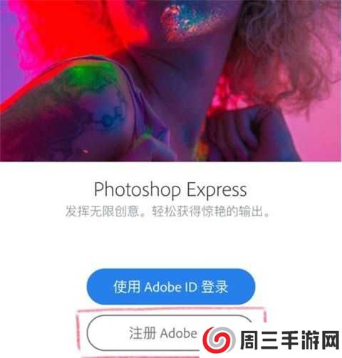 1.进入软件,接着登录AdobeID,可以使用电脑端的ID,如果没有ID,那么点击注册选项;