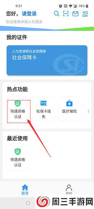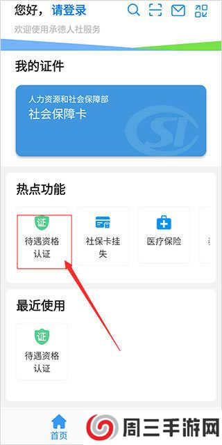 2.然后在主页面点击选择“待遇资格认证”,点击进入;