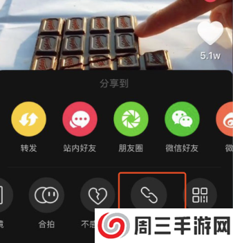 1.在视频app上点击分享按钮,选择复制链接。