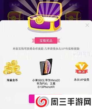 点击做任务开宝箱,还有机会获得海量金币/小米手机/华为手机/苹果手机/永久会员(流年觉得手机咱就不要想了,弄个会员或者一点点金币还是有可能的)
