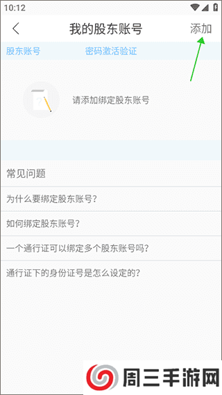 4、在进入“我的股东账号”页面中,点击“添加”