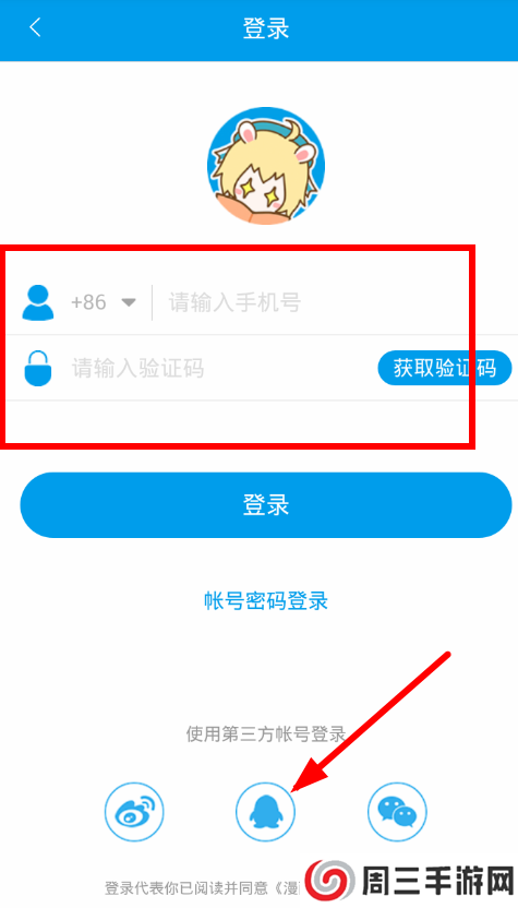 2、在登录界面,输入账号密码或者使用第三方账号重新登录即可。