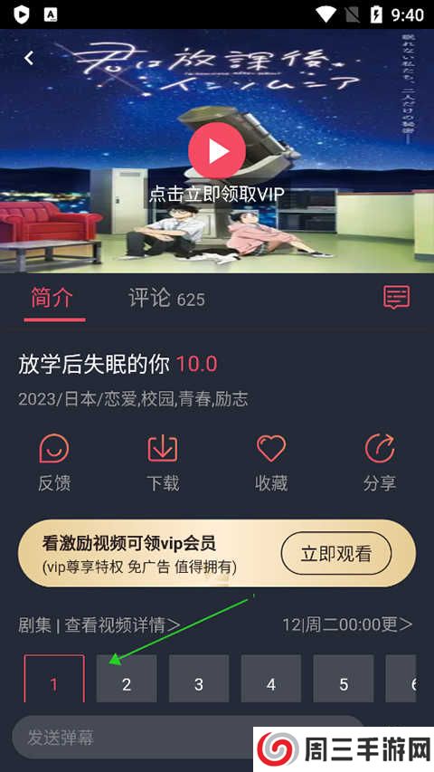 2、在动漫播放界面中,上方会有一个“点击立即领取VIP”,直接点击上方的播放区域。
