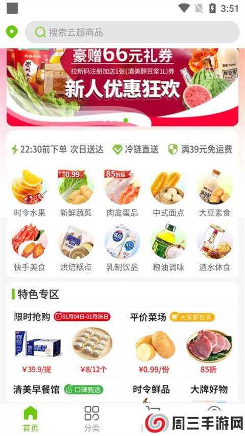 清美云超是一款主打生鲜超市购物的优质手机购物工具,在清美云超中,每天都在不定时的上架中,可以按照自己的喜好来下单购买优质好物。让用户买的放心、吃的安心,还有超多的优惠福利,让用户买菜更省钱。
