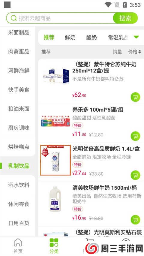 1、进入清美云超app首页,选择要购买的种类进入分类界面