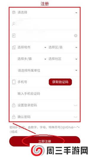 选择地区,填写姓名、身份证等相关信息后,点击“立即注册”;