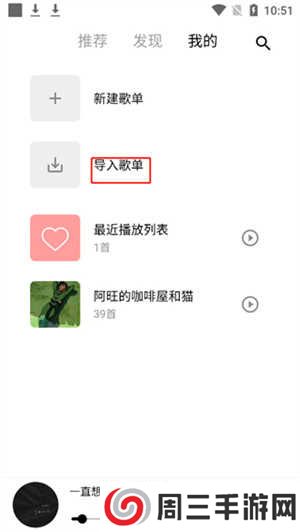 等待识别完成后,最近播放列表下面就会出现刚导入的歌单,如图所示;