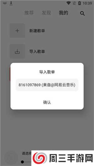 登录进去以后,点击“我的”,选“导入歌单”,填写歌单链接,点击“确认”;