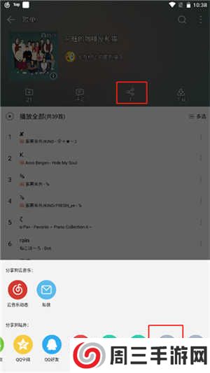 6.进入网易云、酷狗、QQ音乐等平台的歌单里,点击分享按钮,点击复制链接;