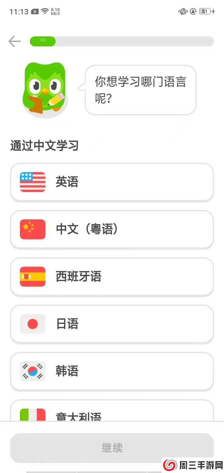 1、首先,在本站下载并安装好之后,打开app,新手登录的话需要选择自己想要学习的语言,比如说英语;