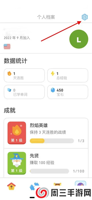 3、点按“设置”/齿轮图标后,将显示你的用户名以及多邻国帐户的详细信息,如需修改帐户信息(如头像),也可以在此处进行。