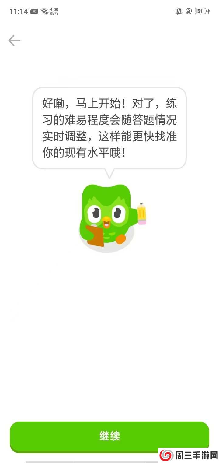 2、选好之后,需要进行一些问题的回答,然后就进入练习阶段,题目的难易程度会随着答题情况实时调整哦~
