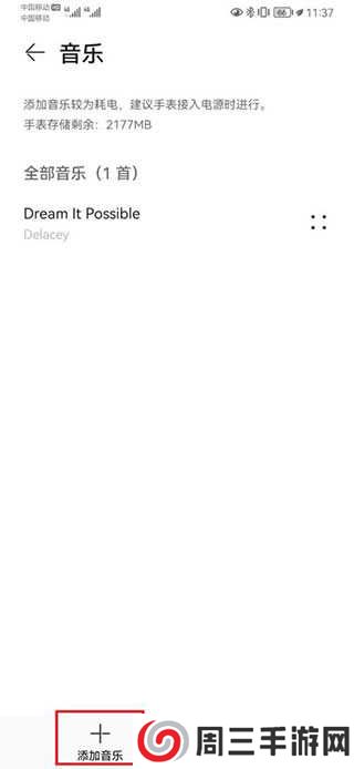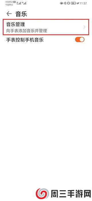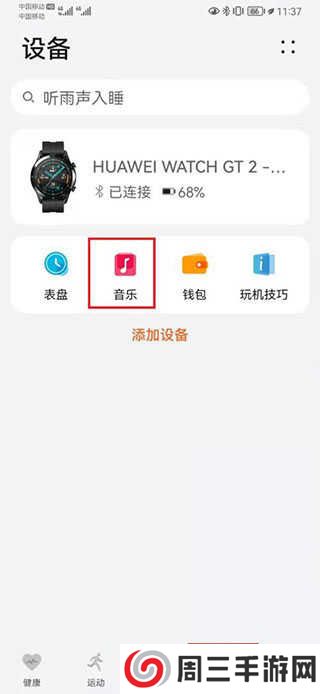 1、在华为健康应用的设备页面,打开华为手表【音乐】选项;