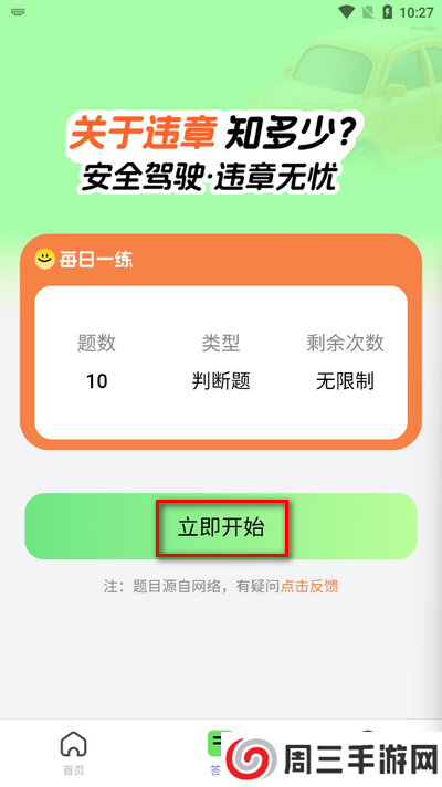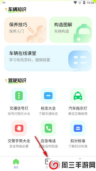 1.打开软件进入首页,点击下方答题