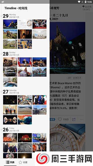 6.点击左上角来到时间线也可以查看之前的新闻。