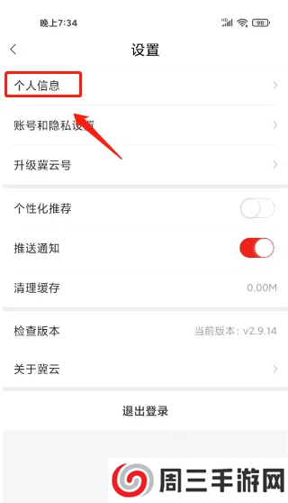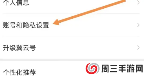 进入冀云app我的,进入设置,点击(个人信息)选项,如图标注所示。