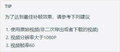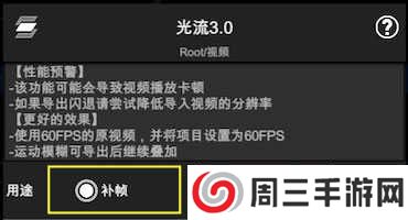 2、然后会看到如下的界面,这里可以选择用途为补帧或者运动模煳;