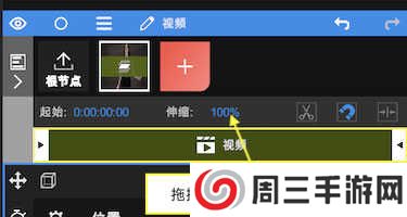 继续添加一段视频素材,然后点击根节点,此时我们可以编辑时间线。