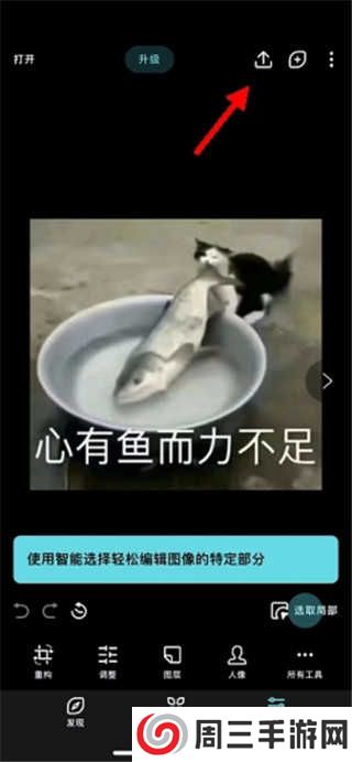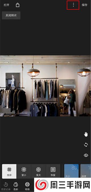 1、下载安装本站提供的泼辣修图免费破解版软件,先选择右上角的三点按钮;