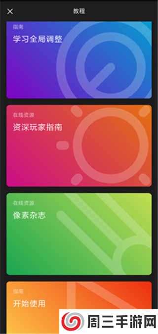 4、将该栏目一直往上拉,就可以看到下面有很多的教程,适合资深玩家指南,适合学习全局调整等等,玩家们可以自行选择。