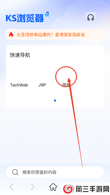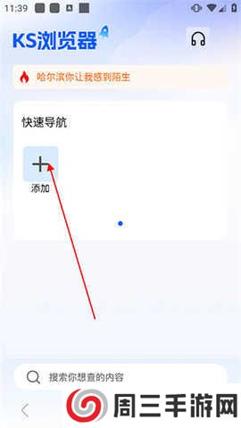 2.进入到首页点击添加,会跳转页面并添加常用的网址和网页;