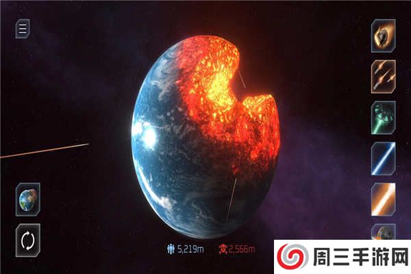 2. 选择灾难类型:玩家可以选择不同类型的灾难来摧毁星球,如陨石撞击、火山爆发、核战争等。