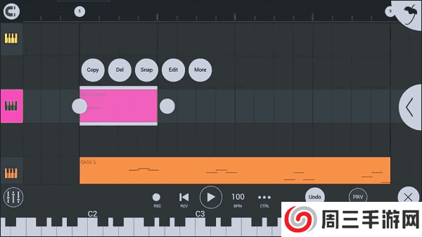 拖动右端小圆形可以改变音符长度(改变时值)。del选项可以删除该音符。点击“×”可以退出当前页面。
