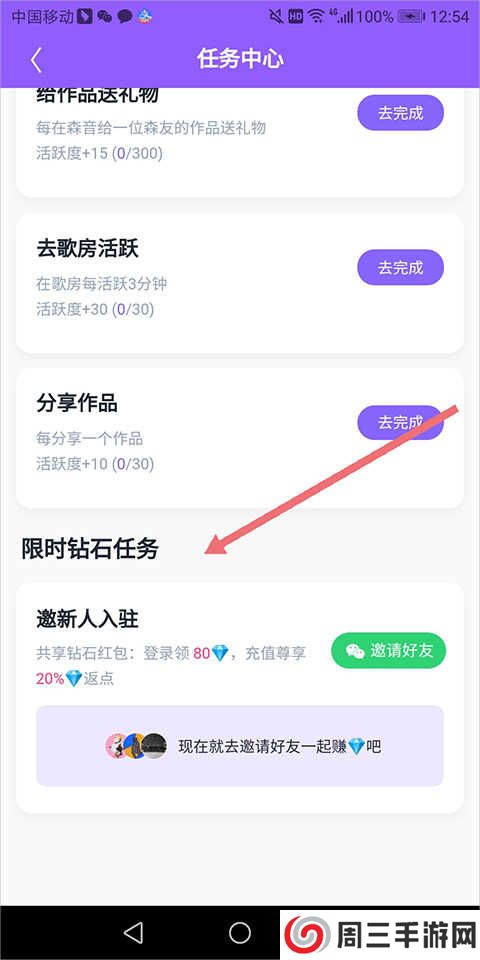 3、同时用户还可下拉该页面至底部,会有限时钻石任务,用户完成该任务可能直接获得钻石