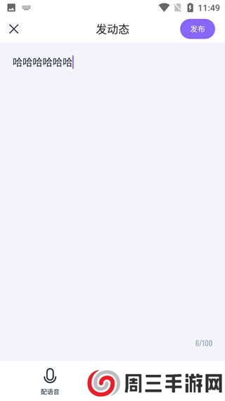 2、填写你要发的文字,你可以自由的进行配音、配图片、以及@好友;