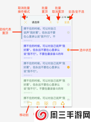 长按首页的任意一条便签,进入批量操作模式,如下图